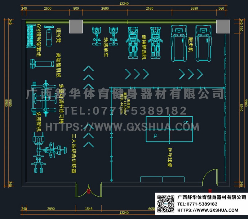 随着健康意识的普及,员工对工作环境的要求已不仅限于薪资和职业发展,更关注身心健康与工作生活的平衡。健身房作为一项重要的员工福利,不仅能够帮助员工保持健康,还能显著提升员工满意度、留任率以及团队协作能力,从而为企业创造更大的价值。合理配置健身器材非常重要,既要满足员工的多样化健身需求,又要确保空间利用高效、安全。以下是准对114m²企事业单位健身房的配置方案。