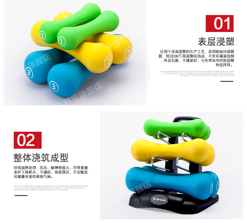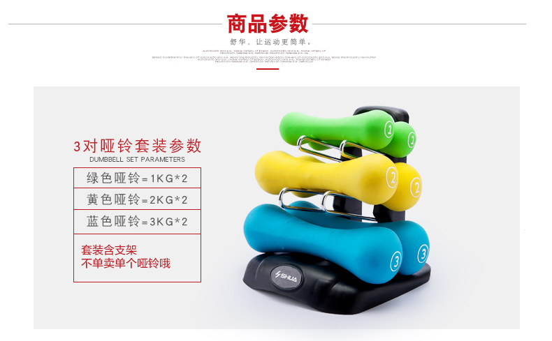 KS体育直播SHUA浸塑哑铃套装 家用男士女士健身时尚环保健身运动器材
