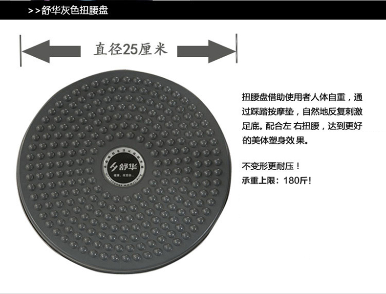扭腰器借助使用人体自重,用过踩踏按摩垫,自然地反复刺激足底。配合左右扭腰,达到更好的美体塑身效果。