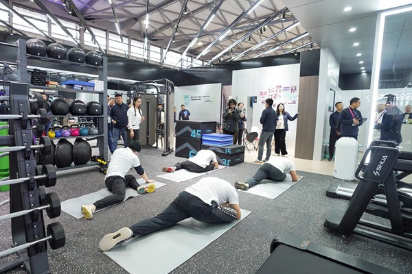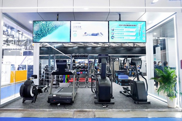此次KS体育直播体育参展的最大亮点在于其别出心裁的展位设计。不同于传统的器材展示,KS体育直播此次以“KS体育直播健身”门店空间布局的概念来展现,将展位分为前台、洽谈区、体测区、团课区、私教区、有氧区以及综合训练区等多个区域。这种布局方式旨在为参展观众提供全方位、沉浸式的体验,使其能够更深入地了解“KS体育直播健身”的核心理念和服务。