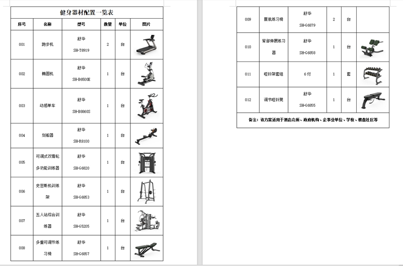 健身器材配置说明∶